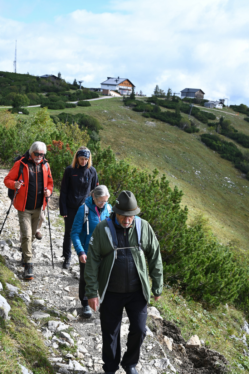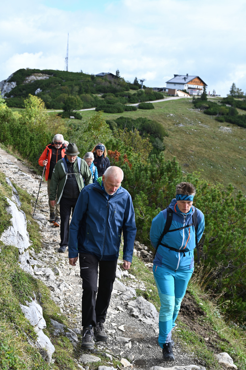 Am Mittwoch startete Hans Prangl gemeinsam mit Wanderfreunden eine Tour im Rahmen von „Wocha teiln“ auf dem Feuerkogel. Um 10 Uhr begann die Wanderung beim Treffpunkt Christophorushütte, Ziel war das Europakreuz am Alberfeldkogel.