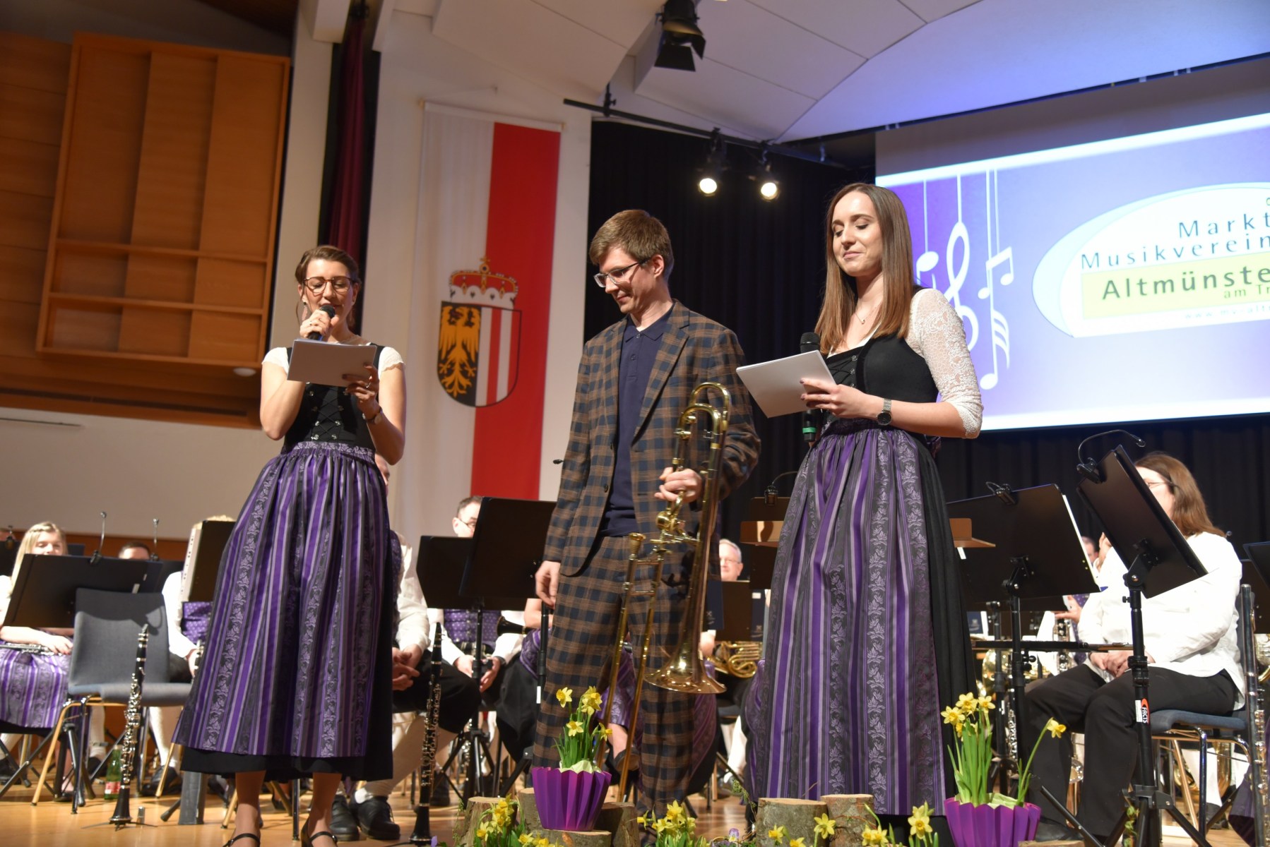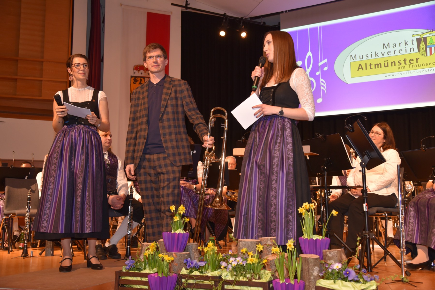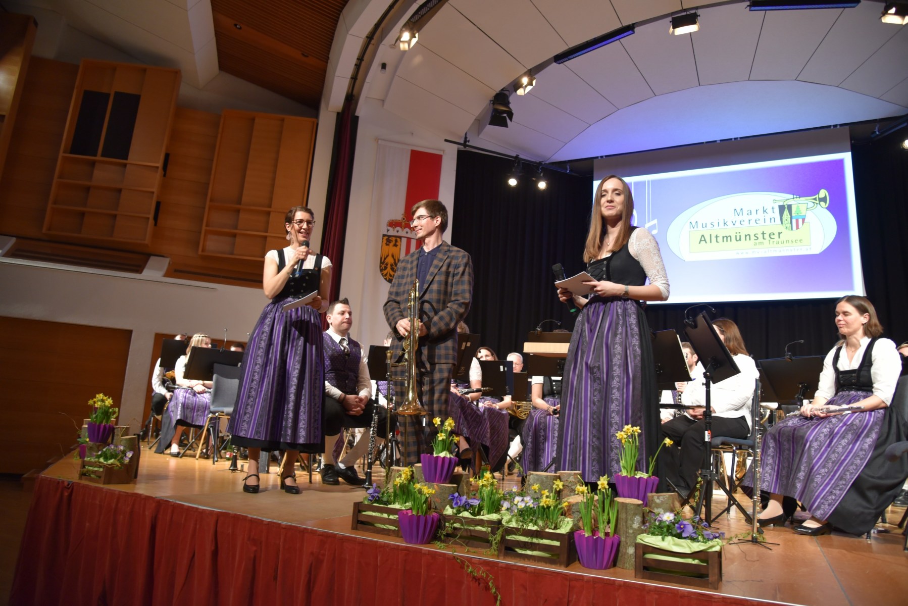 Die beiden Moderatorinnen führten einen SmallTalk mit dem Solisten Alois Eberl, der auf die Frage der Zusammenarbeit mit dem MV Altmünster im Gespräch betonte: „Respekt – Miteinander und nicht gegeneinander, das ist im Musikverein Altmünster sehr deutlich zu spüren!“