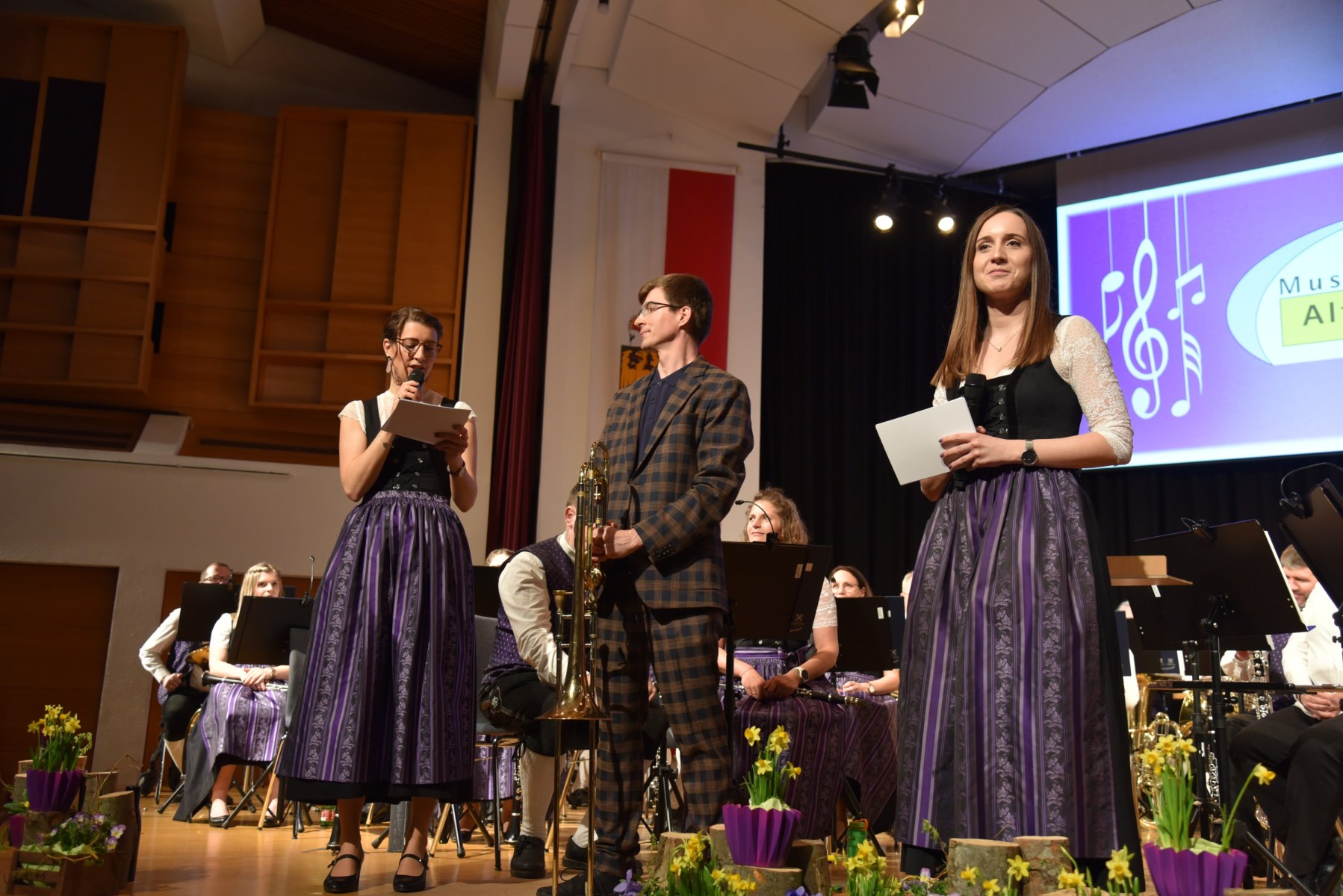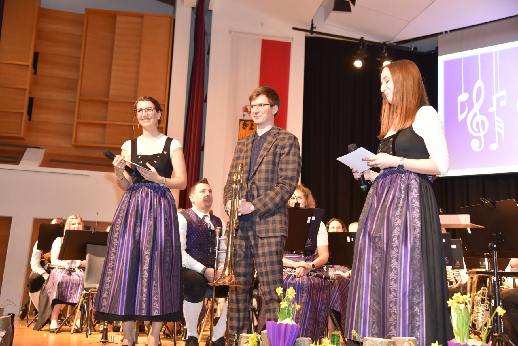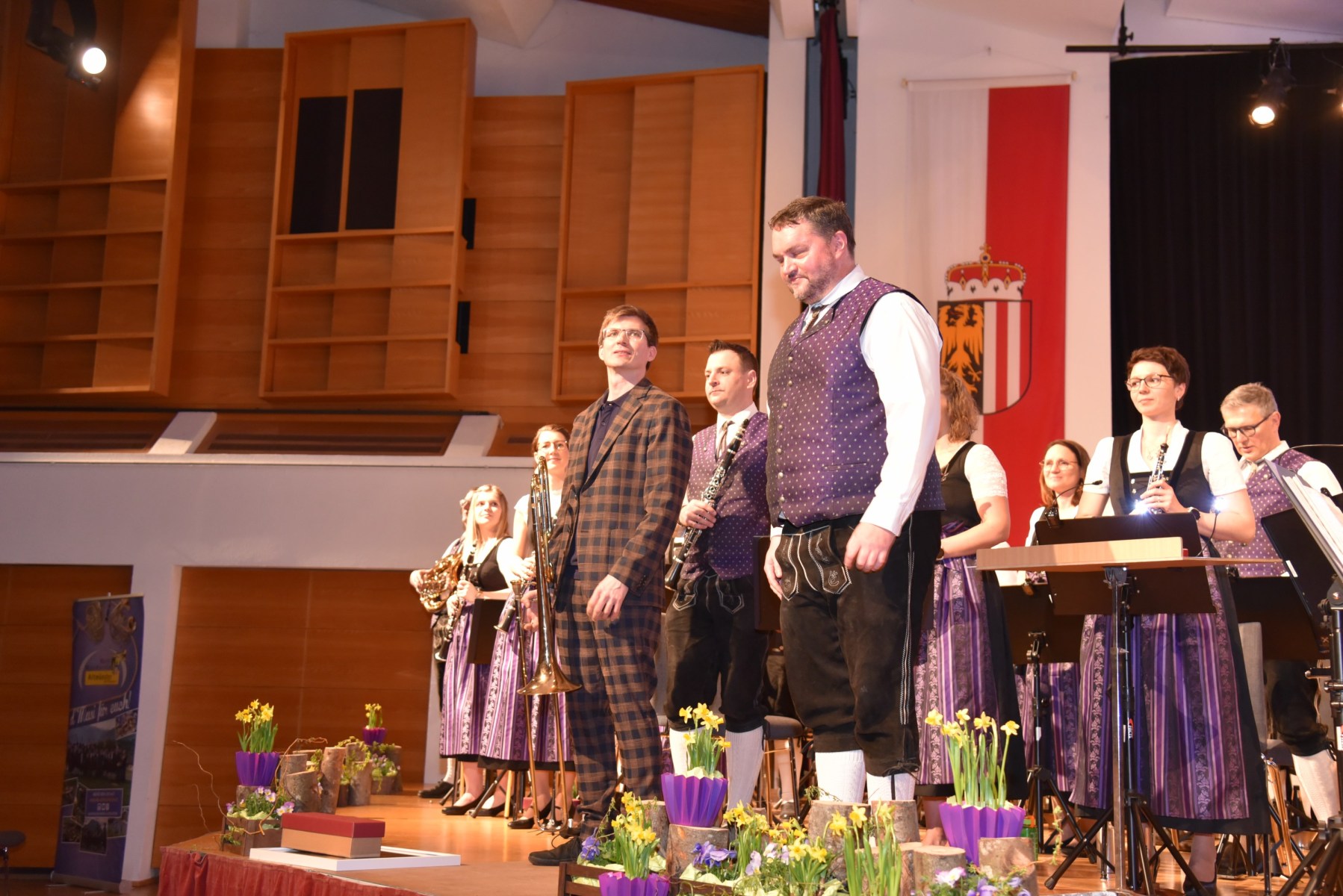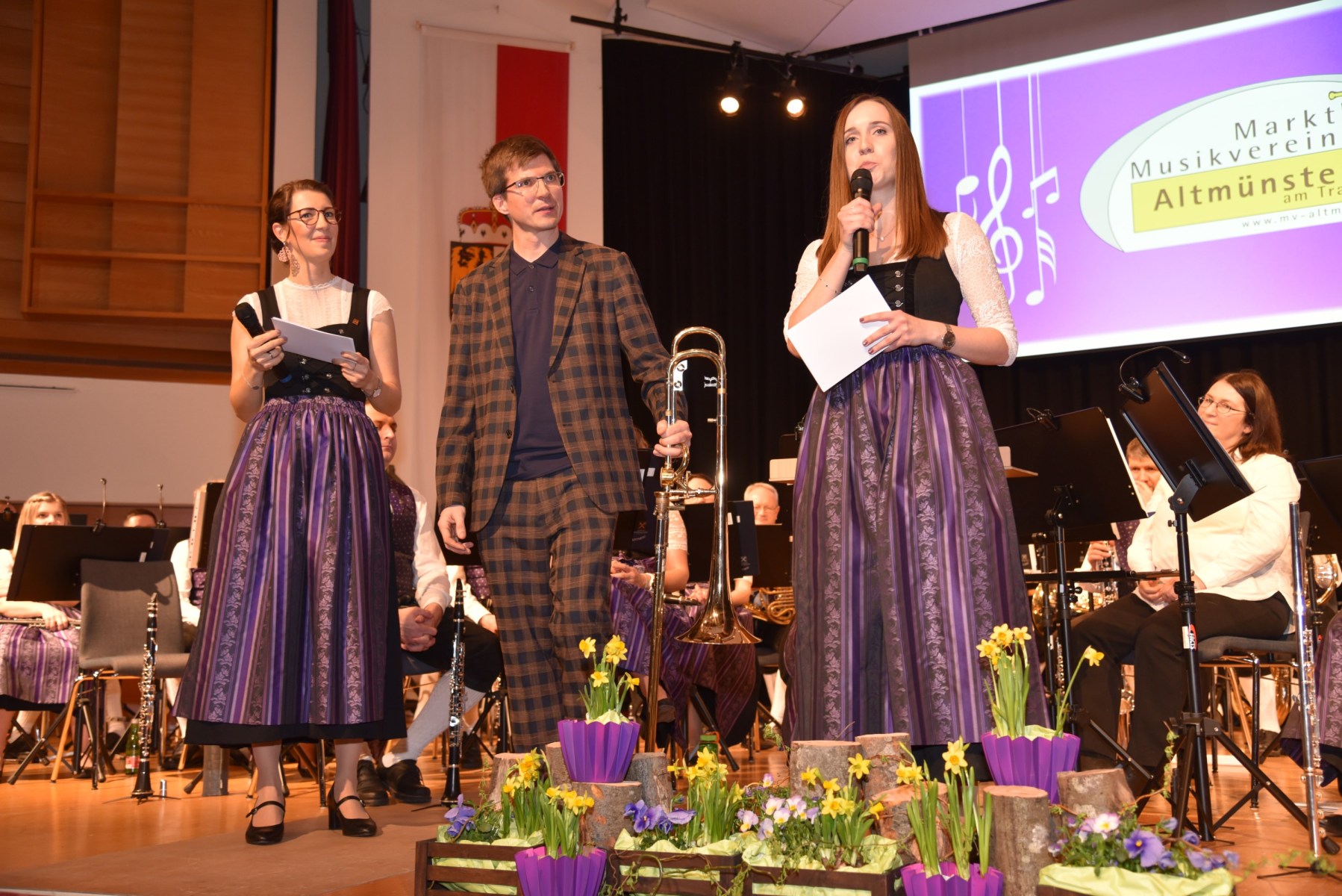 Die beiden Moderatorinnen führten einen SmallTalk mit dem Solisten Alois Eberl, der auf die Frage der Zusammenarbeit mit dem MV Altmünster im Gespräch betonte: „Respekt – Miteinander und nicht gegeneinander, das ist im Musikverein Altmünster sehr deutlich zu spüren!“